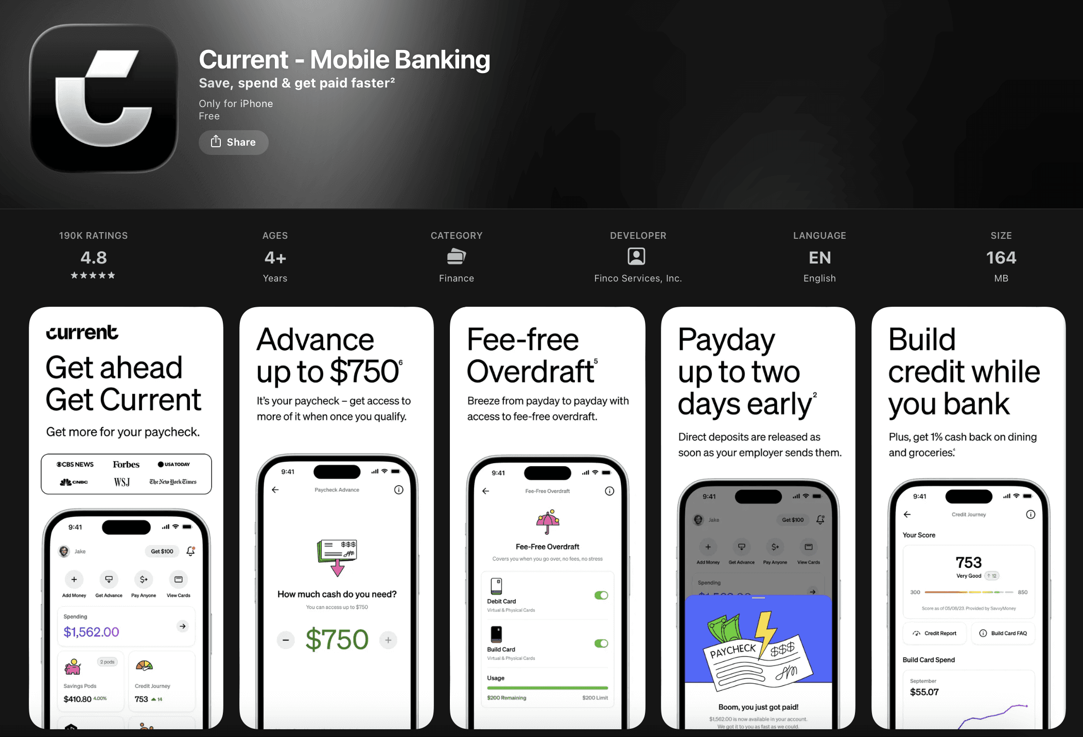 “Current has been solid for fast advances when my hours fluctuate. Not a scam, not a loan, it’s just early access.”